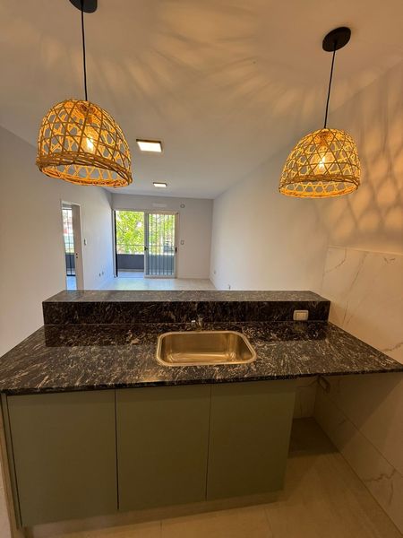 DEPARTAMENTO EL ALQUILER A ESTRENAR. MODERNO Y LUMINOSO DPTO 2 AMBIENTES. EN PRIMER PISO POR ESCALERA. CON EXCELENTES TERMINACIONES Y DETALLES DE CALIDAD, LISTO PARA ESTRENAR. CUANTA CON COCINA INTEGRADA CON MUEBLES COMPLETOS. ALACENA Y BAJO MESADA. EQUIPADA CON COCINA DOMEC Y PURIFICADOR LILIANA. BAÑO COMPLETO CON GRIFERIAS Y SANITARIOS DE PRIMERA LINEA. HABITACION CON PLACARD EMPOTRADO. QUE INCLUYE CAJONERA , ESTANTES Y BARRAS. ADEMAS AMPLIO BALCON AL FRENTE, MUY LUMINOSO. CON MOSQUITERO Y REJAS DE SEGURIDAD. AMBIENTES DE TERMINACIONES MODERNAS Y EXCELENTE DISTRIBUCION. UBICACION ESTRATEGICA, BARRIO TRANQUILO Y RESIDENCIAL. CON RAPIDO ACCESO A TRANSPORTE , COMERCIOS Y SERVICIOS. EXPENSAS. COCHERA OPCIONAL. INSTALACION TODO ELECTRICO. IDEAL PARA PAREJA O PERSONA SOLA. SE ACEPTA UNA MASCOTA PEQUEÑA. CONTRATO POR DOS AÑOS. INDEXACION CADA TRES MESES. SU CONSULTA NO MOLESTA